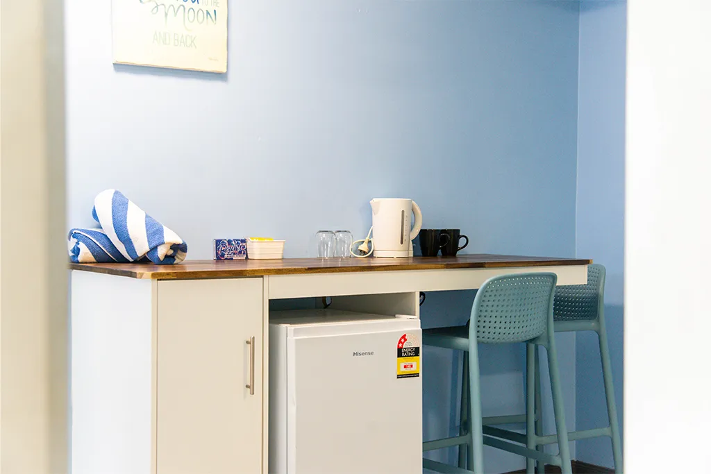We offer a variety of rooms, including private doubles, deluxe doubles with private lounge areas, twin rooms, and dormitories (mixed and female-only).