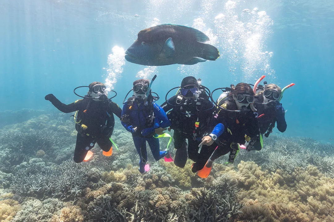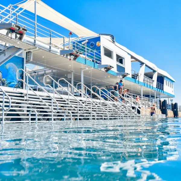 The all-weather pontoon is designed for all activity levels and offers snorkelling in a sheltered coral lagoon, Guided Snorkel Safaris with a Marine Biologist, scuba diving, and Sea Trek Helmet Diving.